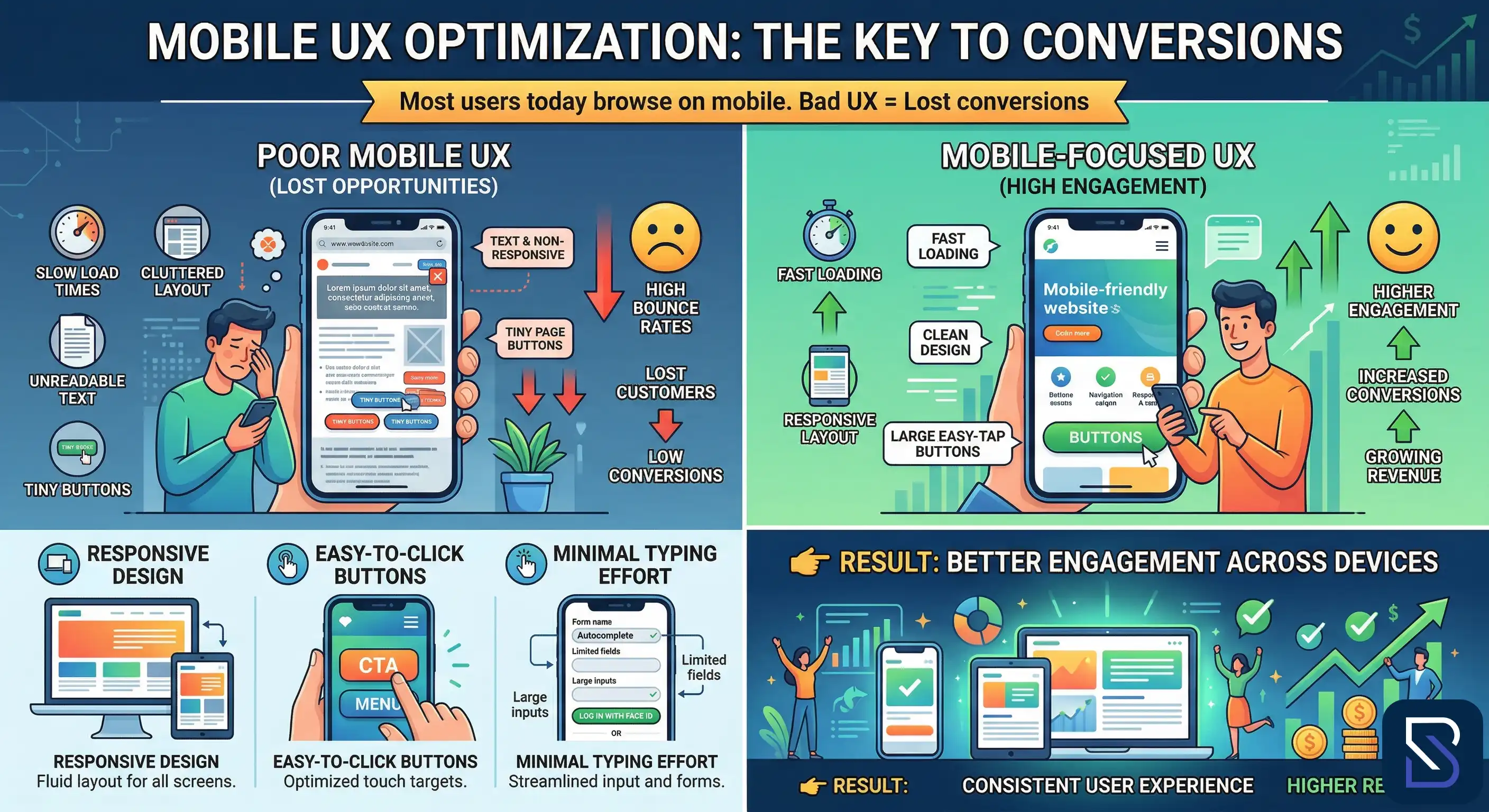 Mobile-focused UX includes: