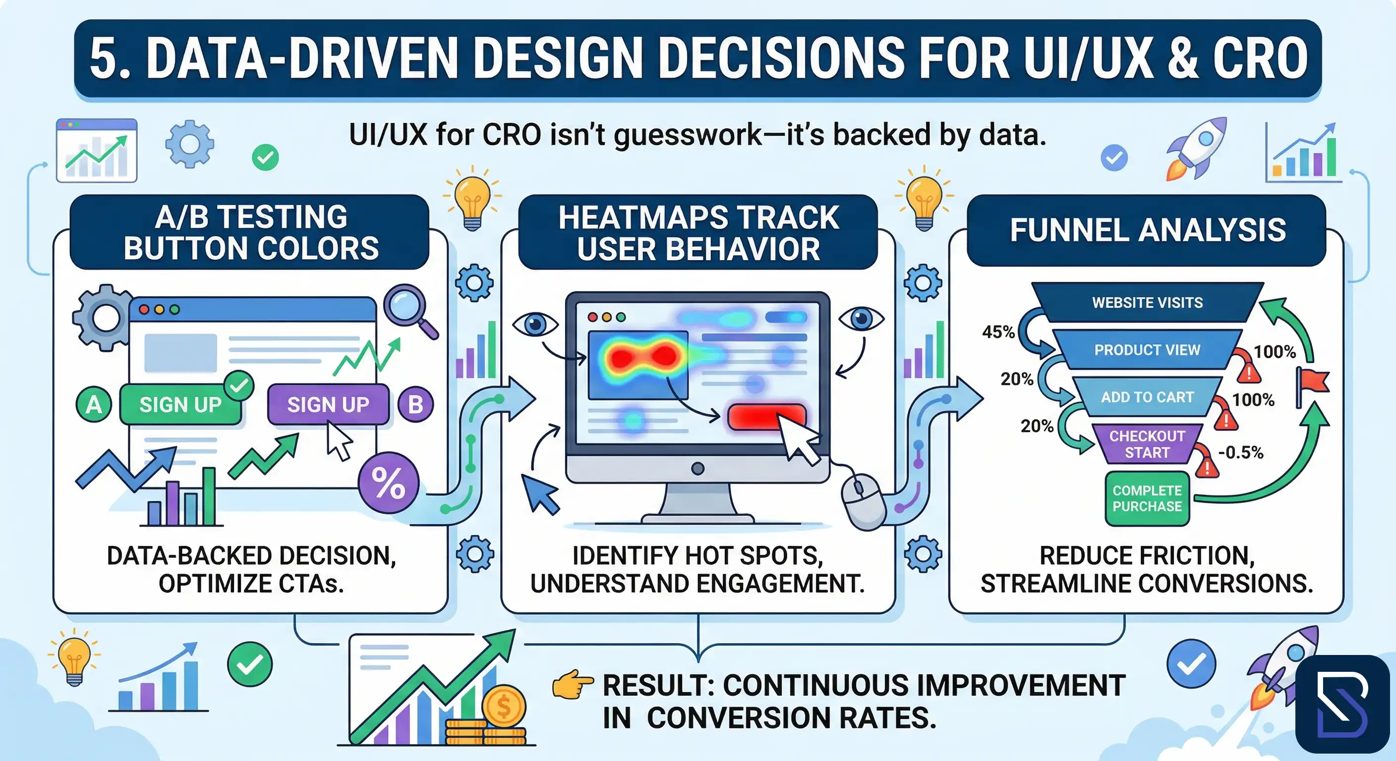 5. Data-Driven Design DecisionsUI/UX for CRO isn’t guesswork—it’s backed by data.